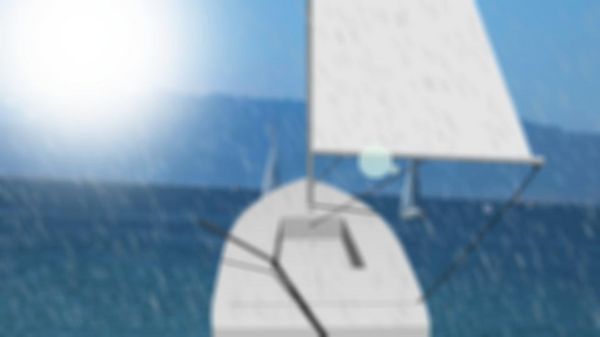 Example training image after image augmentation which shows a sailing dinghy in rear view with sunlight, rain and added noise.