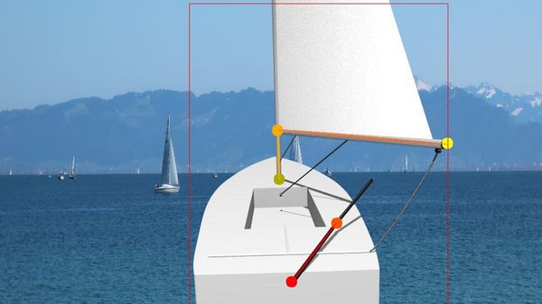 The basic idea is that you have an image of a sailing dinghy taken from the stern of the dinghy. The image should cover the whole sailing dinghy and sailor, especially the boom and tiller. By feeding the image into a machine learning model the angle for both, rudder and boom displacement is predicted.